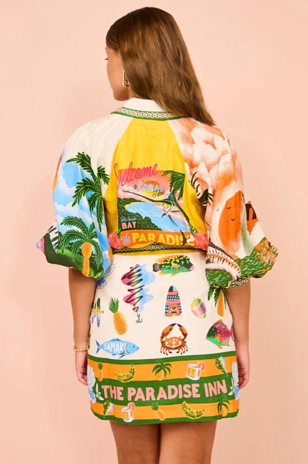 Feel like you're on a Summer holiday in this popular mini by Alemais. Pair it with a rattan bag and flats for a casual day time event or heels, a red lip and slicked back bun for a look that's both playful and stylish.
