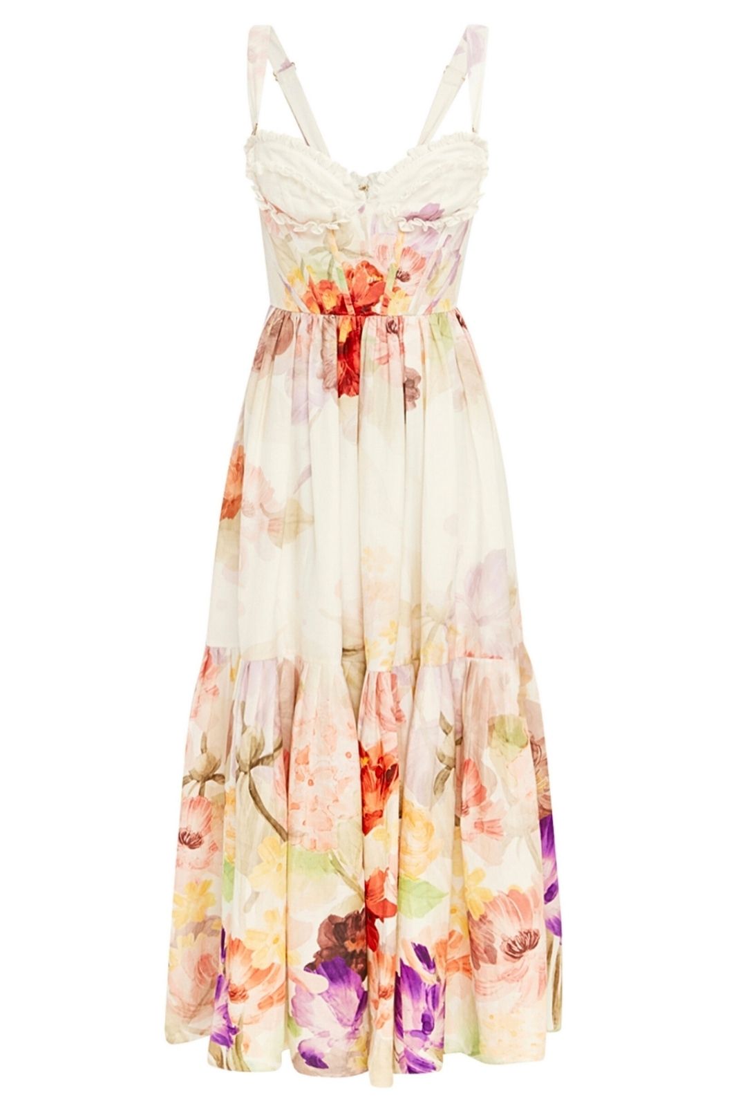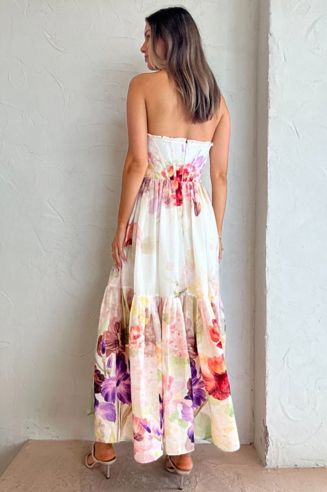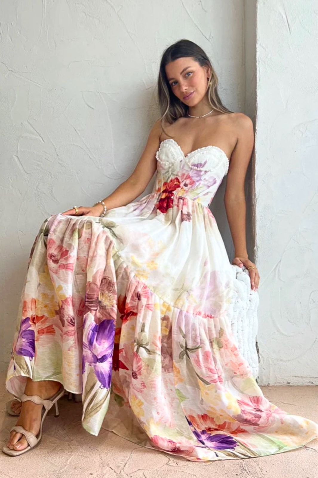 This beautiful midi features an eye-catching sweetheart neckline with ruffle detailing to accentuate the bodice. The floral design in a watercolour effect adds a soft, romantic feel making this the perfect dress for formal events, birthday celebrations and wedding related events such as the engagement party, rehearsal dinner or farewell brunch.