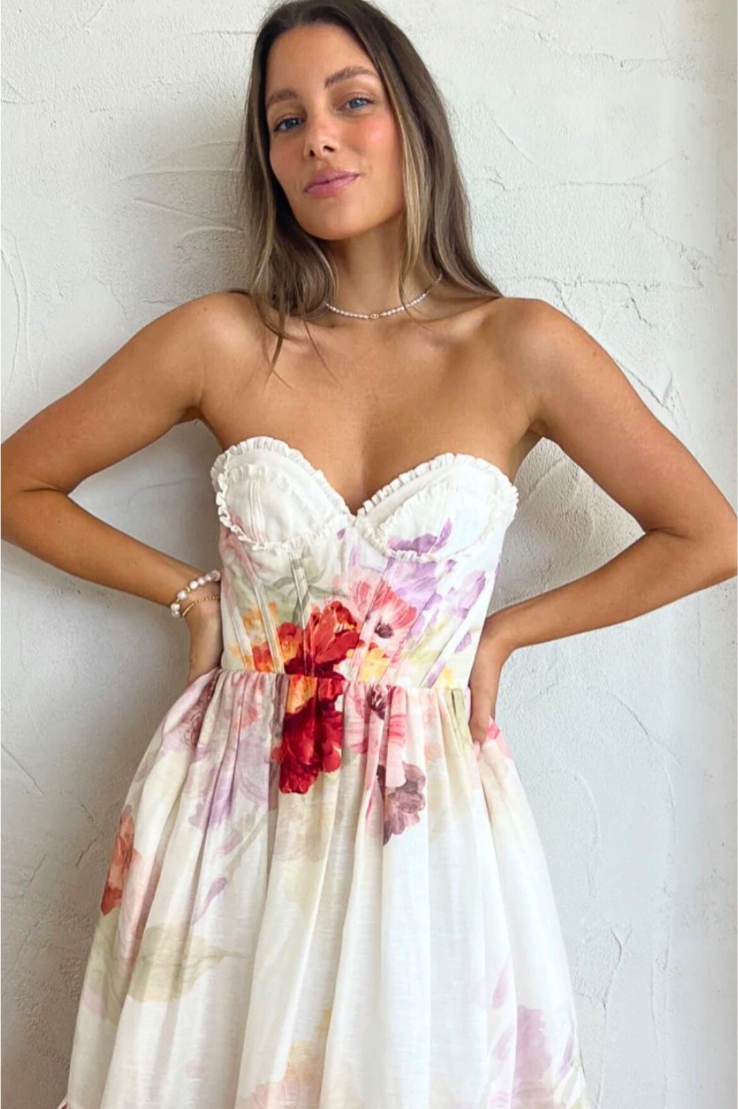 - Ruffle detail through the bodice